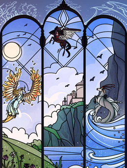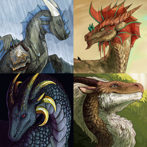 - Simon of Blacklake , a trans knight/squire with wing-summoning magic. Poor Simon, he’s the only one who doesn’t get a coloured border (entirely because I thought the black outline worked better than the green I was considering).