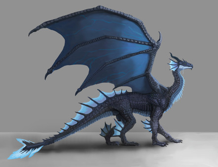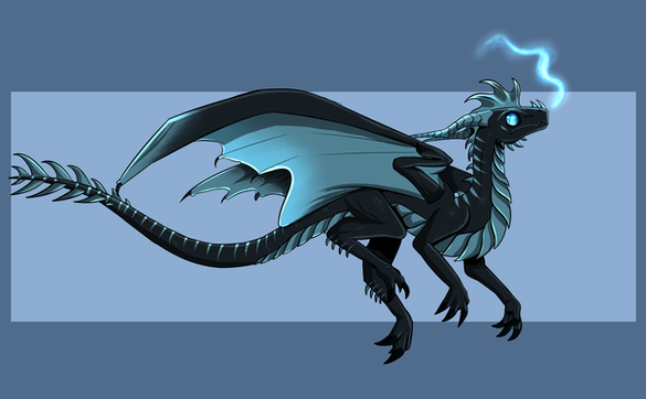 His colours were pretty easy to lay down. Just a blue-grey with some countershading. It's probably too dark to be a typical colour for a SeaWing, and there's no influence from the other two tribes in there, but perhaps this version of Godzilla is melanistic. I gave him blue fire; he'd probably be like a MudWing and only be able to use it when he's warm. His fins and eyes glow when he uses it due to his SeaWing blood; I don't think he'd be able to control it, it just happens when he breathes fire.