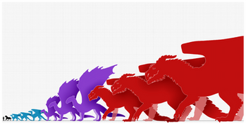 I think my choices for tribes are fairly self-explanatory, but just in case, I'll break down my thoughts. All of the Wings of Fire dragons are really slim and slender except for the MudWings, really, so I had to use them; I mean, just look at Godzilla, he's ridiculously beefy! And of course, he had to be part SeaWing, since there's no version of him where he hasn't emerged dramatically from the ocean. The LeafWing is probably the least appropriate of the three, but in his 2003 design (and most of his designs ever) Godzilla's covered in irregular, rocky skin. None of the tribes really have anything like that; their scales are pretty smooth and organized into nice, predictable patterns. The LeafWings had somewhat irregular scales and an interesting pattern on their wings, so I decided to add them in as well!