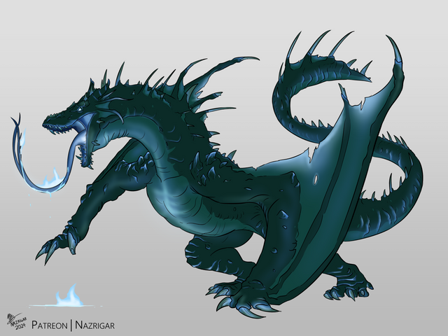 It's amazing how this is a dragon but also so distinctively Godzilla-like. The scales and especially those stout limbs evoke him very well. The longer, more elongated face makes him look sleeker and predatory so I'm a big fan. I wonder what he'd look like if he had the distinctive dorsal spines.