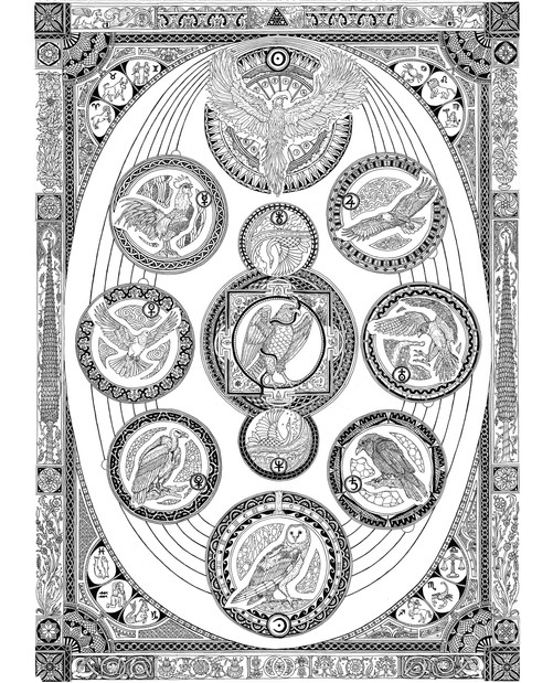 #bird #circle #fish #heraldry #heron #leaf #leaves #pattern #star #swirls #symbol #realmofserpents
