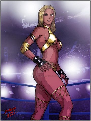 A remake of [link] done as the special pin up that was mentioned in [link] . Erin was even kind enough to sign it for her fans lolI may go back as I wanted to include a snapshot of her performing her finisher Bombshell (Chick Kick)