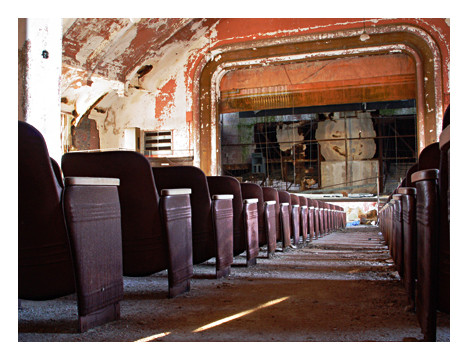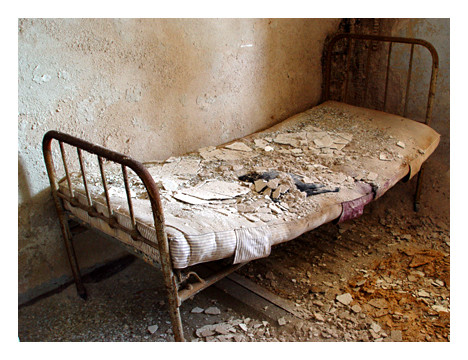 i like how the still reflective shiny OR lamp....contrasts with teh decrepid conditions of the actual room....