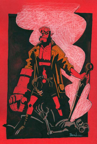 21cm x 30cm (8 1/4" x 11 3/4")Watercolour pencils on red card.