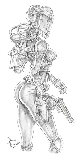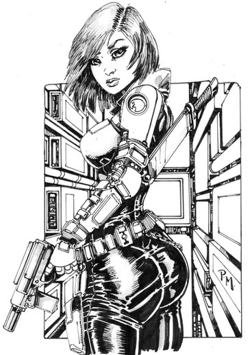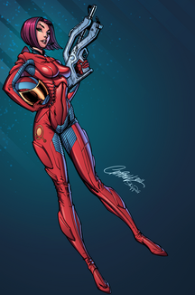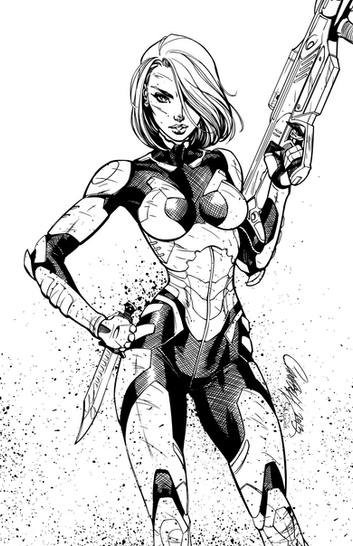 J. Scott Campbell drew this a little while back for one of the Paris comic-con Banners. They asked for a Sci-Fi character and a Fantasy character. This is the Sci-Fi character.I decided to give her a name, Up until now she was just known as Sci-Fi girl.