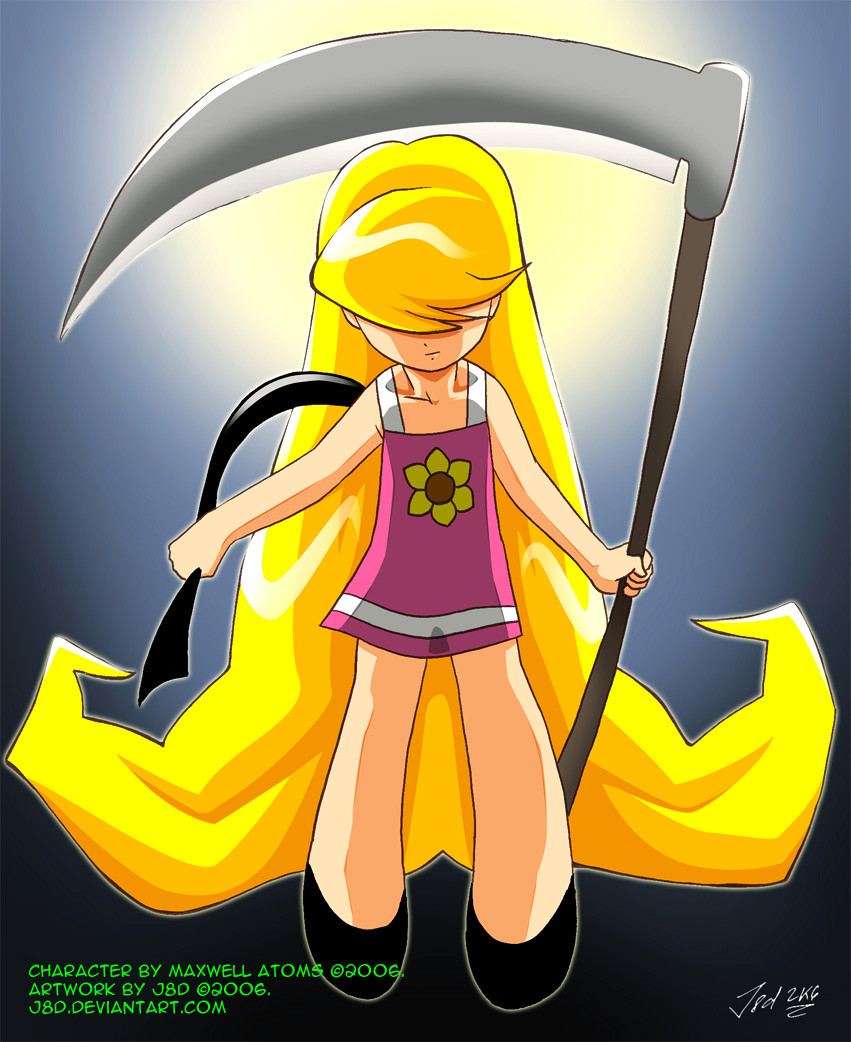 Even if I've never seen the show, I'm amazed on how Mandy contrasts: the cuteness of her girly outfit and the evilness of her scythe... hey, I hope she doesn't cut her hair with it!