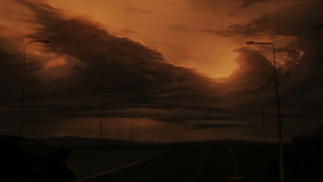 #evil #hell #night #ominous #orange #red #road #fire #powerline