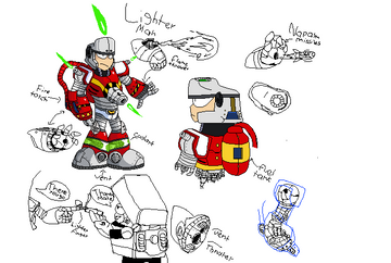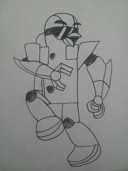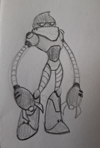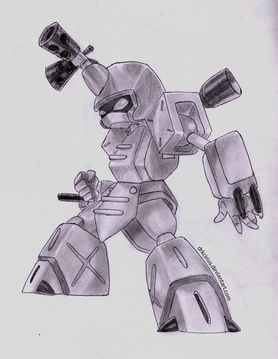Just a random doodle. I had the idea for a mon game based on...essentially a fusion between Pokemon's mechanics and Medabots' aesthetics; you'd collect and build a team of Robots, customize them by swapping around their individual parts, and go to town.I...gave up on this drawing. Like, I had an idea, and followed through, and just chose not to do a better job at some point. But, oh well. Maybe I'll refine this not!Prowl another day, lol.