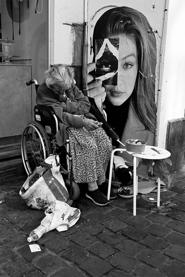 Then when i looked at the sign, i made the link between title and her sign. Some people might laugh, but to me, it's a very strong impact. The fact that she's actually became incapable of even holding a sign properly, shows that she's been suffering for quite a while.