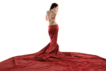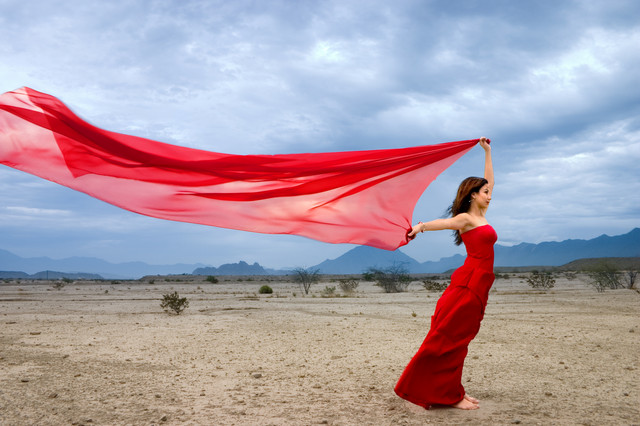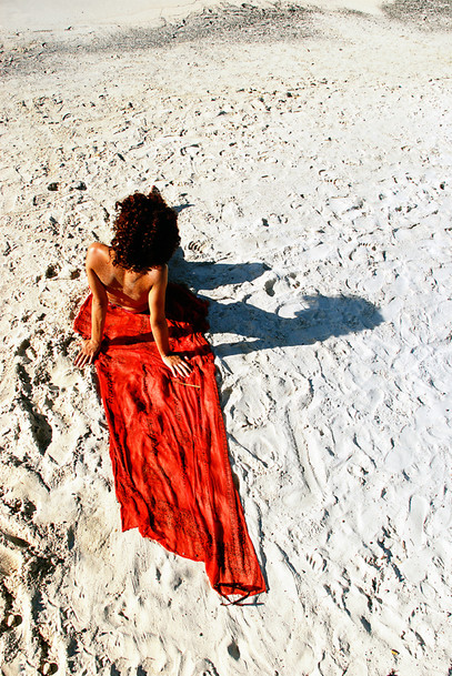 the simple bright fabric around marta's gorgeous body, opening in front to show her wings.... flowing with the soft sea wind...