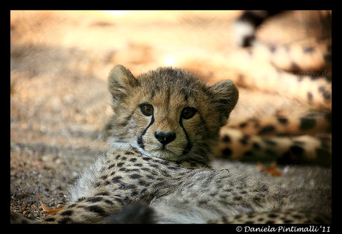 awww hes cute :3 if im not mistaken thats a cheetah cub ? or is it a leopard cub?
