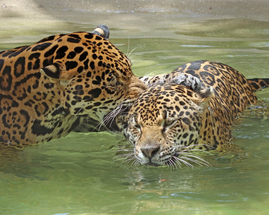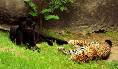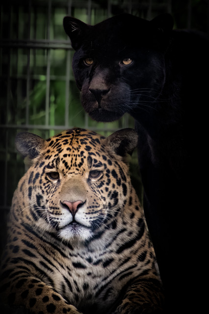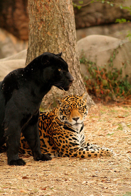 So most people don't know that you can have two colors of Jaguars; just like you can have a Black Leopard, you can have a Black Jaguar. It's even rarer to be able to get a shot of both fur phases sitting by each other.Related content