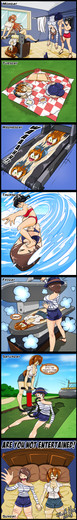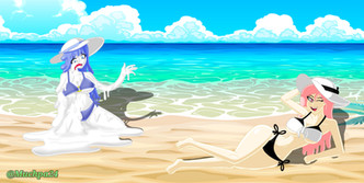Listen to Nitori. Always put on your sunscreen.Little thing featuring my Nitori (buff fox lady) and DominiqueMelted 's Domi (the sexy blue puddle)
