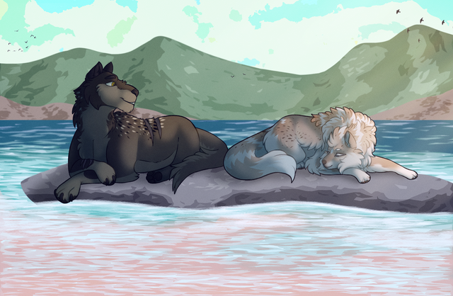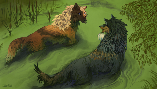 During their winter talk Deborah and Ileana agreed to spend some more time swimming once the weather was more agreeable for it. The pair of old wolves make good on their decision to take to the water together in hopes of strengthening their old joints and having a bit of carefree fun... but the time isn't without its own hazards. Ileana surfaces right under a leaf and suffers some good natured teasing from Deborah!-----