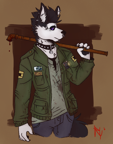 #oc #art #anthro #bar #baseball #baseballbat #bat #biker #bikerbar #character #claws #commission #drawing #fangs #furry #gay #jacket #leather #original #originalcharacter #whip