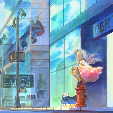 #bright #buildings #city #colorful #colourful #cute #digital #drawing #girl #lamp #lantern #light #night #painting #shop #shoppe #store #street #woman #digitaldrawing #digitalpainting #illustration #sketchystyle