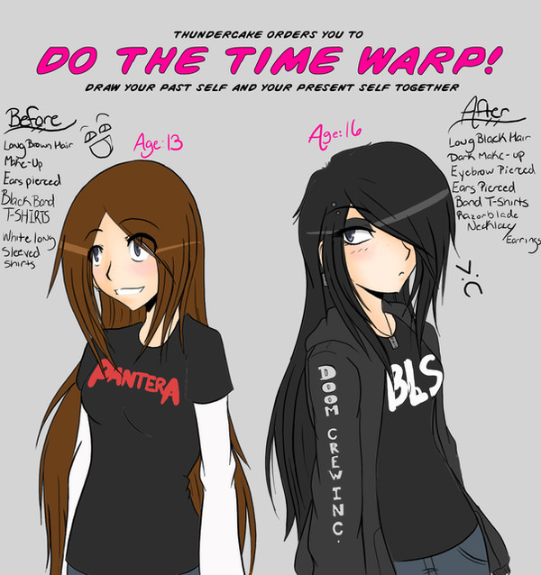 THis is really cuuute! actually. and I sort of thought these were boys..or very pretty boys BUT I can see they're both girls!! (before looking at this I was looking at very fem boys...so, I'm glad to be looking at girl char now =-= lol) and I'm all for this new transformation :] You look cute both years!!! I like how you drew yourself <3 I want to try...but that means I'd have to pull up old pictures to remember how I was freshmen year...lol
