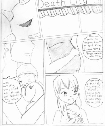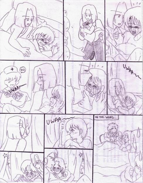 So as you can see from the date in the corner, I did this way back during the summer, around the time I started writing my SE: Next Generation story. I had this random idea for a scene I was going to write (its there but altered) and wanted to draw something for it... this is what came about.I imagine they'd have an energetic newborn child, even while in the womb and for that, Tsubaki doesn't get much rest. As a result, Black Star's developed a technique to put the baby at ease with his soul wavelength.