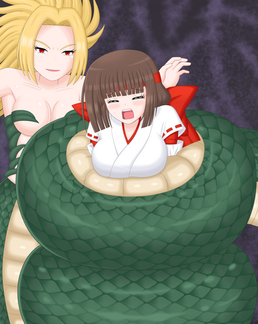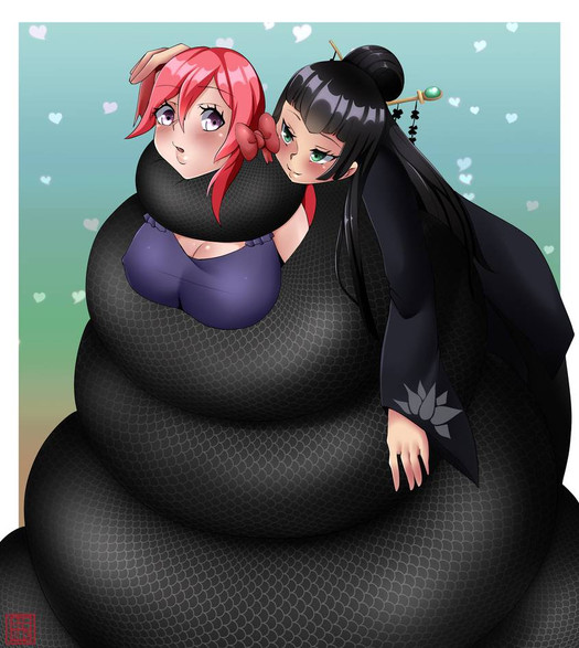 "Hssss" Went Nagi, the cold blooded serpent obviously content with the heat of the two warm blooded ladies it was wrapped around. Cvet flushed, sandwiched and coiled up very tightly between the two.