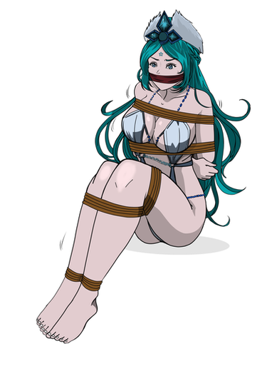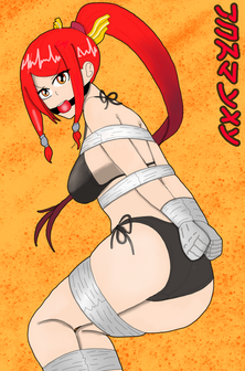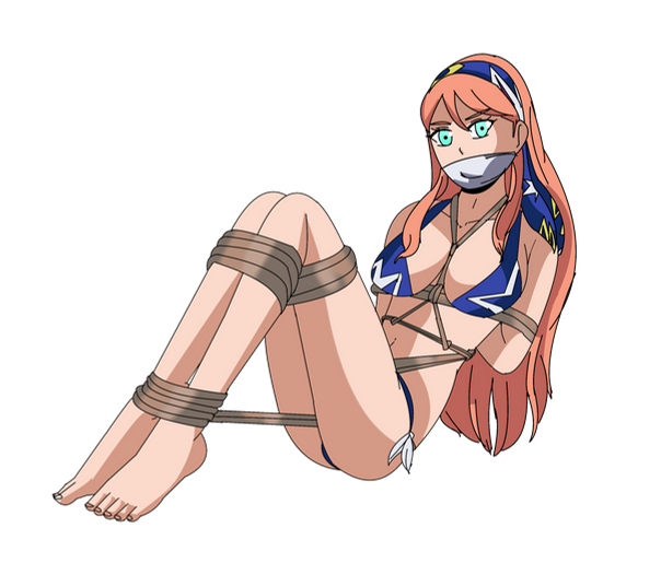 --------------------An unexpected but ever so much appreciated birthday gift from (and drawn by) with colors by , featuring my gal Cvet Helconia, finding herself ever so delightfully hogtied on the beach in a cute lil bikini, her royal tush and footsies on full display while ever so completely gag snobbed!