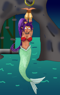 Just remembered something, I was actually going to write a fan fiction of Shantae being tied up for the Mermaid Factory and she can't get the tail off as it's actually completely stuck to her while Tuki the Snake pops out of her pot nearby to mock her.
