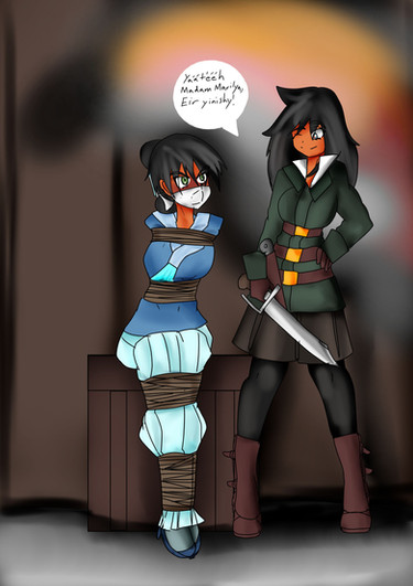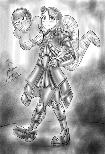 "GHHGMH! PHHHGHHD MHHH DHHHWN YHHHHNG LHHDY!" Amaretto bellowed in fury into the silk wrapping wound across her mouth, while she bucked and kicked furiously atop her would-be rescuers shoulders."Oh come on Auntie!" Cvet said with a giggle of a reprimand. Cvet carried her statuesque god-aunt easily enough despite her petite frame. Thanks all thanks to the casual strength of one of her families hereditary suits of empowered armor. The same strength it had provided had allowed her to rescue the much be-grieved Amaretto from the mummifying tomb kittens!