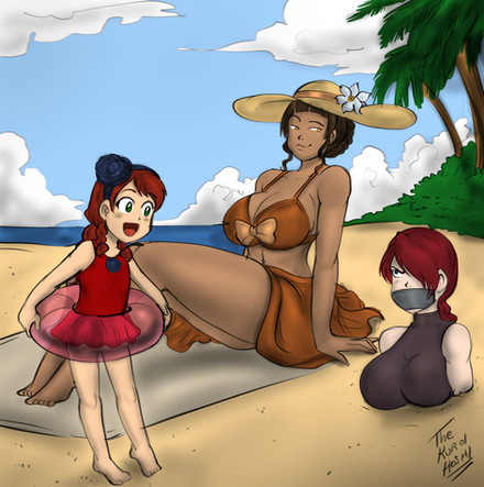 Sorta an aside to this oldie pic that my bud Brokenbolt did for me. www.deviantart.com/jackmackhac…Angelica is a tad less villainouss than her mom, but she's more than ready to take after her in terms of asserting her divinity by flexing on a mortal royal by using her tush as throne, and flexing her superiority over her! Cvet had more than a few opinions, though unfortunately for the ginger princess Angelica managed to divine a magical gag onto Cvet's trap (instead of Angelica's own!)