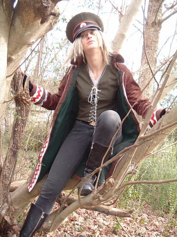 Not only is the overall costume great, how nicely it matches with the picture, but how you are is really neat, too. The pose, and angle, how your arms are lightly supporting yourself on the tree and such, it's just neat