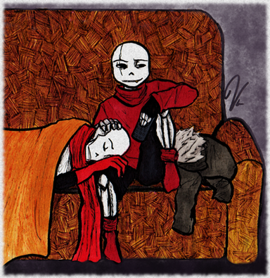 Papyrus walks over and pulls the chair right up against Sans’s, who was resting on the bed.