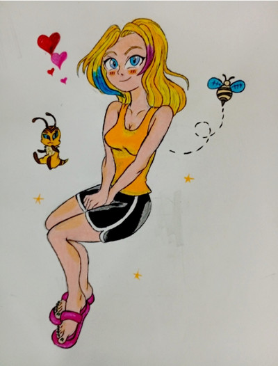 #cartoon #traditionalart #characterdesign #originalcharacter #animal #bee #cartooncharacter #cartoonstyle #doodle #drawing #female #femalecharacter #flowers #girl #humanization #humanversion #illustration #insect #markers #nature #oc #orange #sketchbook #skirt #wings #yellow #femaleoc