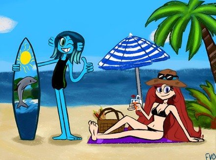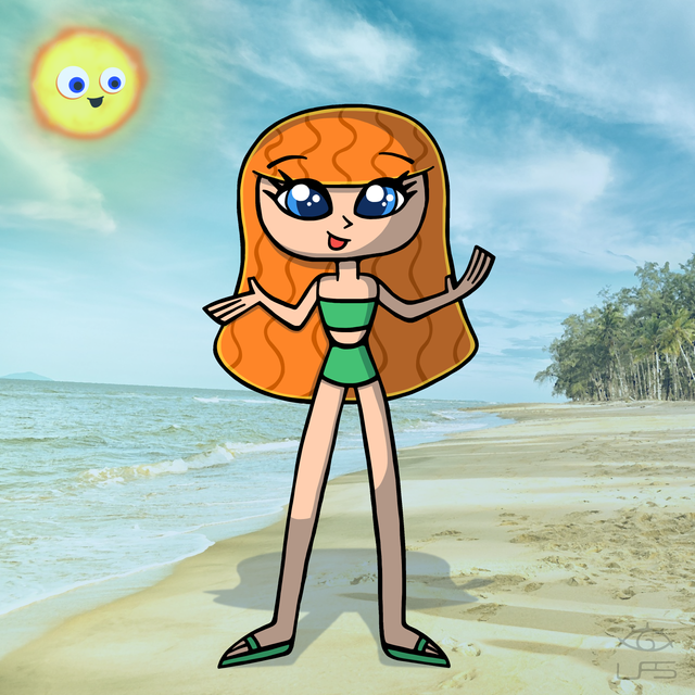 #beach #blue #cartoon #curly #doodle #drawing #girl #happy #human #originalcharacters #sea #sun #sunny #cartooncharacter #cartoonstyle #curlyhairgirl #digitalart #illustration #littlegirl #sunnyday #tropical