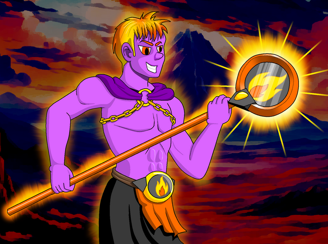 #bright #cartoon #circle #crown #evil #king #light #male #orange #red #smiling #star #sun #weapon #fire #cartooncharacter #cartoonstyle #clipart #darkversion #digitalart #drawing #illustration #landscape #laughing #malecharacter #originalcharacter #scepter #standing #thunder #villain