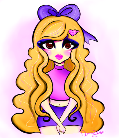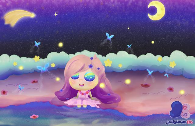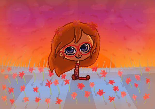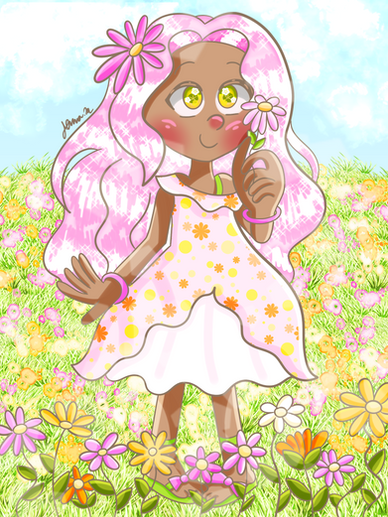 #blue #cartoon #clipart #dusk #female #girl #green #happy #human #light #nature #night #petals #pink #sky #smiling #standing #cartooncharacter #cartoonstyle #digitalart #drawing #femalecharacter #flowers #illustration #longhair #orangehair #purple #spring #tongue_out