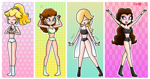 Peach and Rosalina got surprised and frightened because their clothes were damaged...