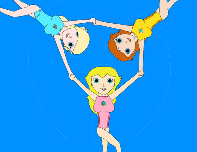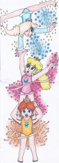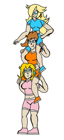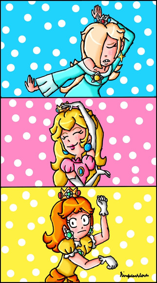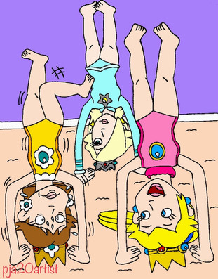 #blonde #blue #cartoon #daisy #fanart #girl #grin #happy #human #orange #peach #pink #princess #request #shocked #skirt #smile #tower #brownhair #cartooncharacters #cartoonstyle #digitalart #drawing #frightened #headstand #illustration #rosalina #supermariobros #gamingfanart #towergirls