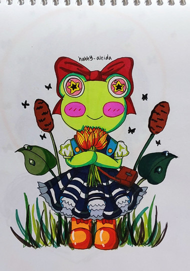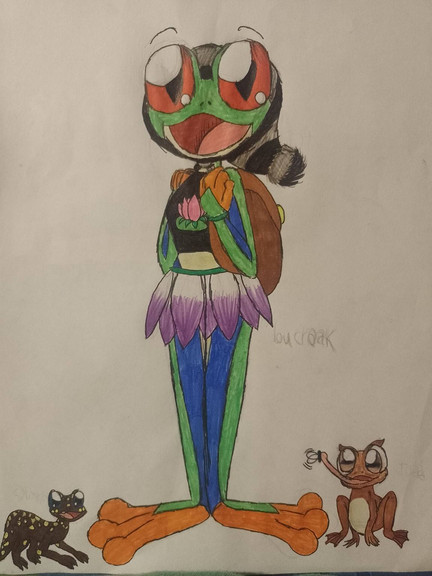 #frog #cartoon #originalcharacter #traditionalart #characterdesign #plants #amphibian #cartooncharacter #cartoonstyle #doodle #drawing #female #femalecharacter #flower #girl #green #happy #humanization #humanversion #illustration #jumping #leaves #nature #oc #sketchbook #tonguestickingout
