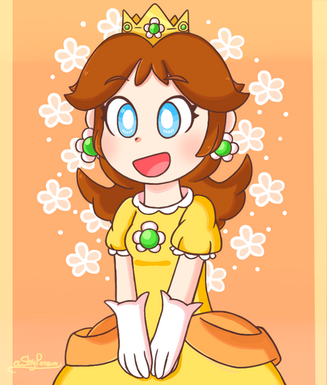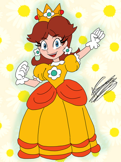 #cartoon #crown #daisy #dress #fanart #female #flower #gaming #girl #happy #human #orange #princess #smiling #yellow #blueeyes #brownhair #cartooncharacter #cartoonstyle #clipart #digitalart #drawing #femalecharacter #grinning #illustration #nintendo #princessdaisy #supermariobros #whiteskin #nintendoprincess
