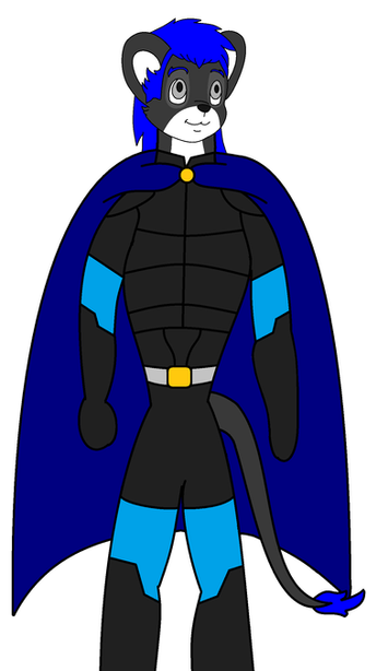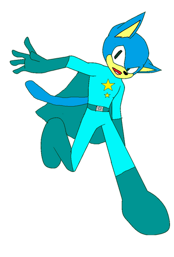 Appearance: brown fur, blue eyes, black hair and eyebrows, blue cape, orange/white boots, ice blue and white superhero-like outfit with light orange star