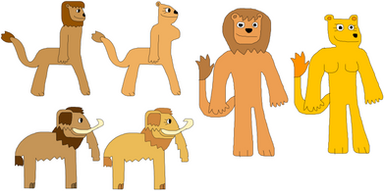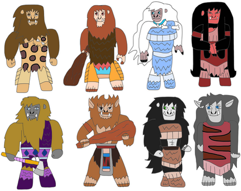 The Neanderthals are Neanders. They work as hunters, builders, inventors, explorers, and such. Despite their primitive appearance, they are advanced and inventive. They are omnivores, so they eat anything. They live in caves, stone houses, huts, mountains, and such. The Neanders are steef-like, but they stand like gorillas, with their faces being chimp-like, having ankylosaurus feet, mammoth-like tails, and messy long hair instead of manes, like the female steefs.Related content