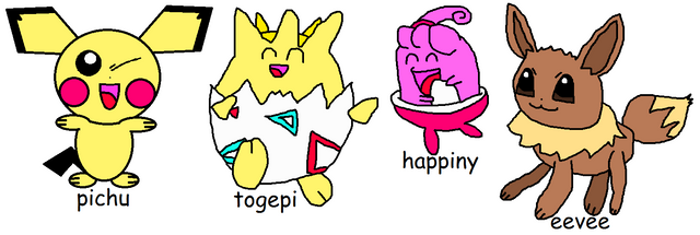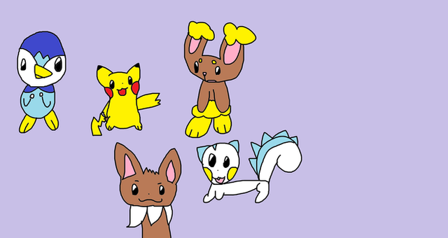Pikachu, Chikorita, Charmander and Piplup as a friendship.Related content