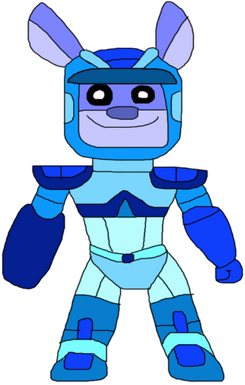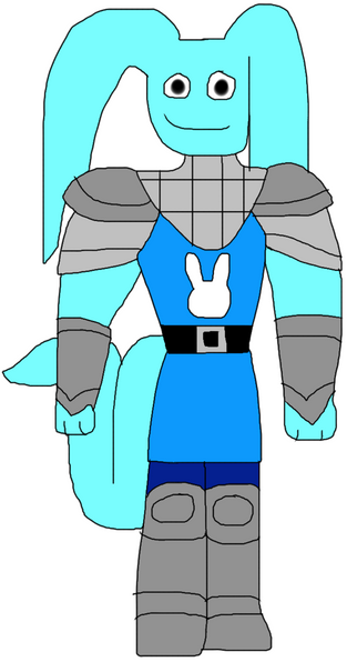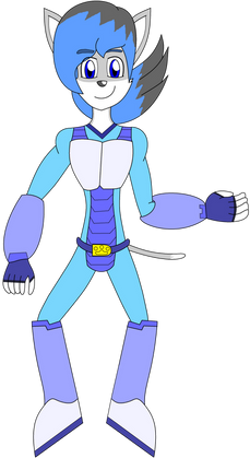 Appearance: orchid fur, black eyes, and blue armor with a blue arm cannon