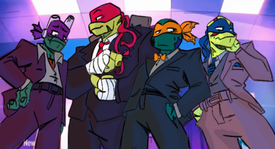 RotTMNT fandom just went WILD when we saw them release official art of them wearing SUITS! I wanna draw all four turtles in suits but the remaining two are just rough tcesty sketches lol!Related content