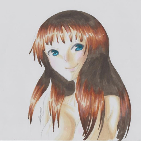 Some more practice with Copics. I don't really like this sketch, but I thought I'd post it anyway. She's an old OC of mine, Mitsuko.I Photoshopped her eyes because I messed up.;;;