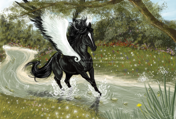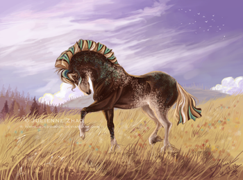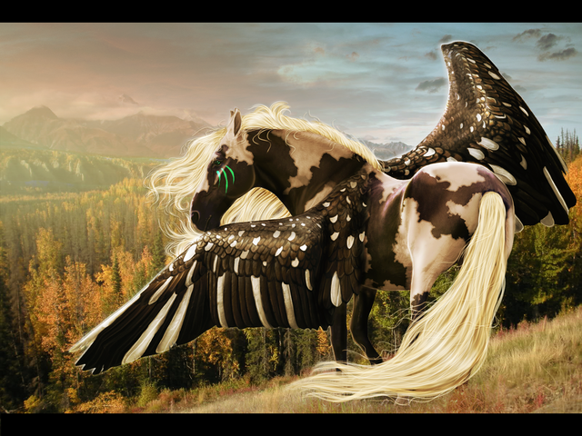 The most beautiful use of peafowl with sabino(? the white markings x_x), everything flows together so nicely, really looks like the foal's shimmering
