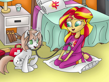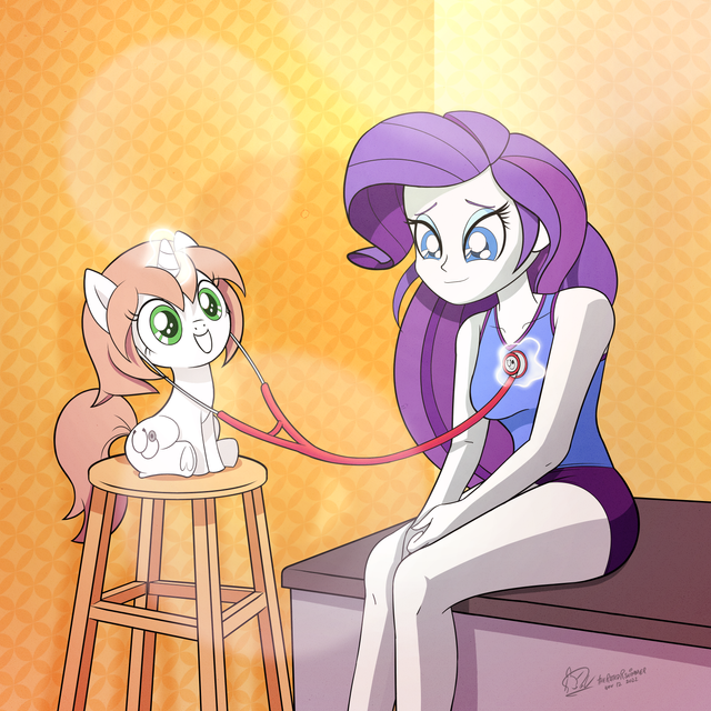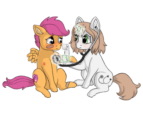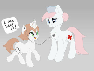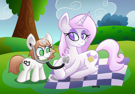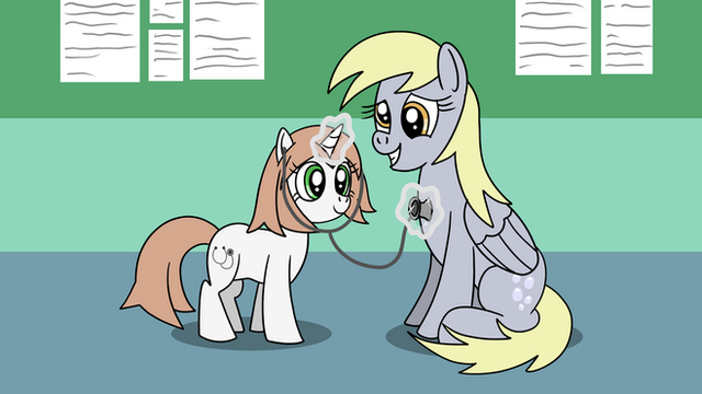 Yeah, it felt kind of empty with just them so I added those in, I wanted to add silhouettes of ponies walking behind them as if they were in a clinic or something, but the more complex it is the more it takes and I still have a long list of requests to do, and my classes start again on monday.