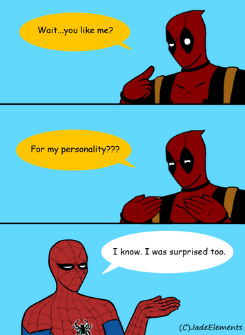 I had a random urge to draw cured Wade from the current Spideypool comic run being flirty. Spidey is not amused. lolRelated content