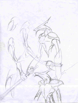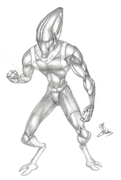 It's a mecha I drew one day, heavily influenced on Evangelion.No, he's not deformed. I drew him without feet. I had such a hard time drawing his hands I barely pulled something off (even though the hands are a bit small...) and didn't bother with the feet out of disgust.