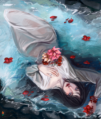 #anime #blood #flowers #original #whitehair
