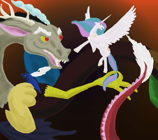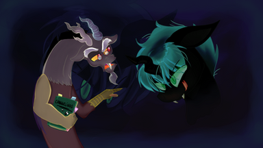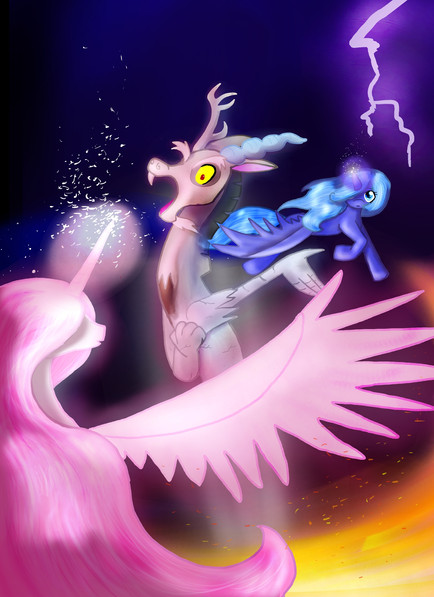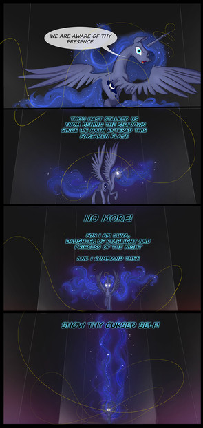 Yup, another fragment of an idea I had long time ago. Basically, they are in a big, dark hidden place, somewhere on the moon. Luna built the thing during her forced millenary sleep, and now, naturally, her memories are vague and blurred and the only thing that she can remember clearly is that the building purpose was to get her older sister and bind her there by any means neccesary.Still, the structure should have collapsed the second the Elements freed her, since what kept it standing was Nightmare Moon's own power and will, and yet the fortress still stands, strong and deep awaiting for its hidden power to be unleashed!