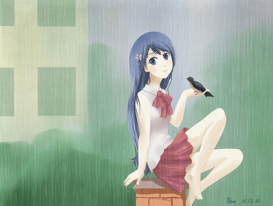 Ooh, love her hair.. and the tones for skin .. and the colors The rain makes a rainbow happen out of seemingly-thin air.